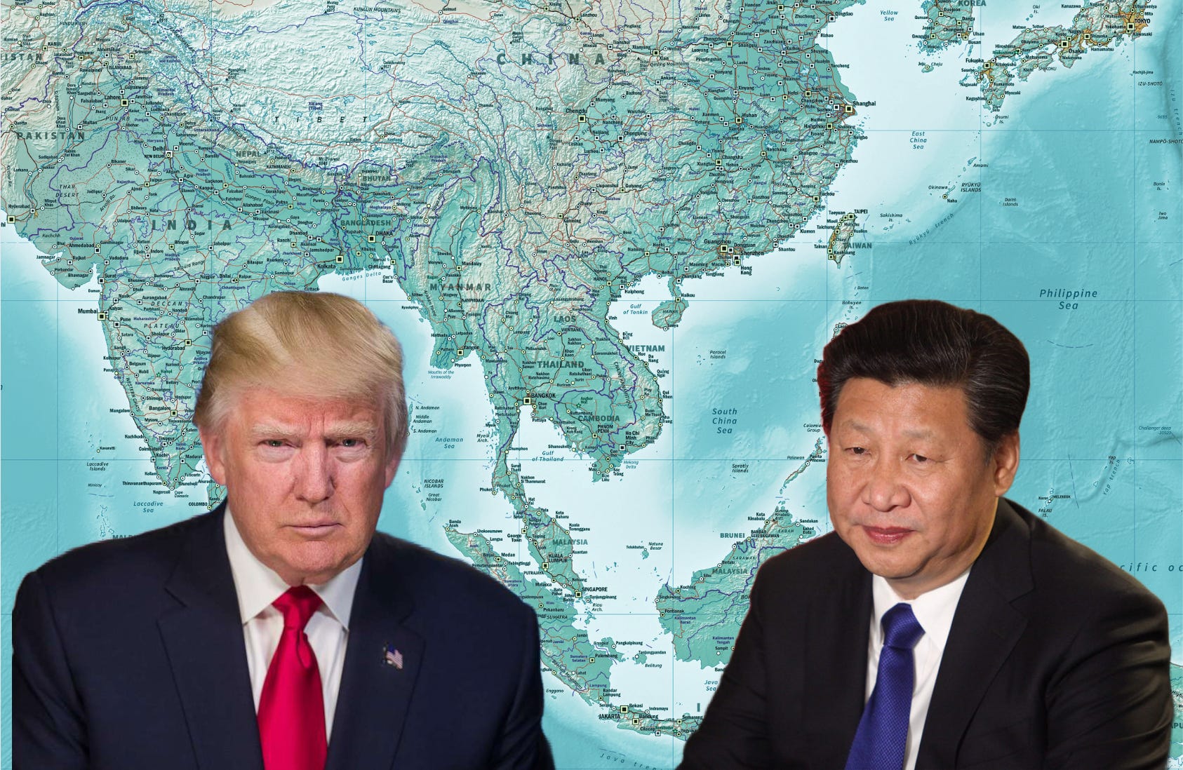Image credit: Composite by Noah Munk using Xi Jinping (CC BY 2.0), Donald Trump (Public Domain), and East Asia map (CC BY-SA 4.0). Minor edits applied. Licensed under CC BY-SA 4.0.